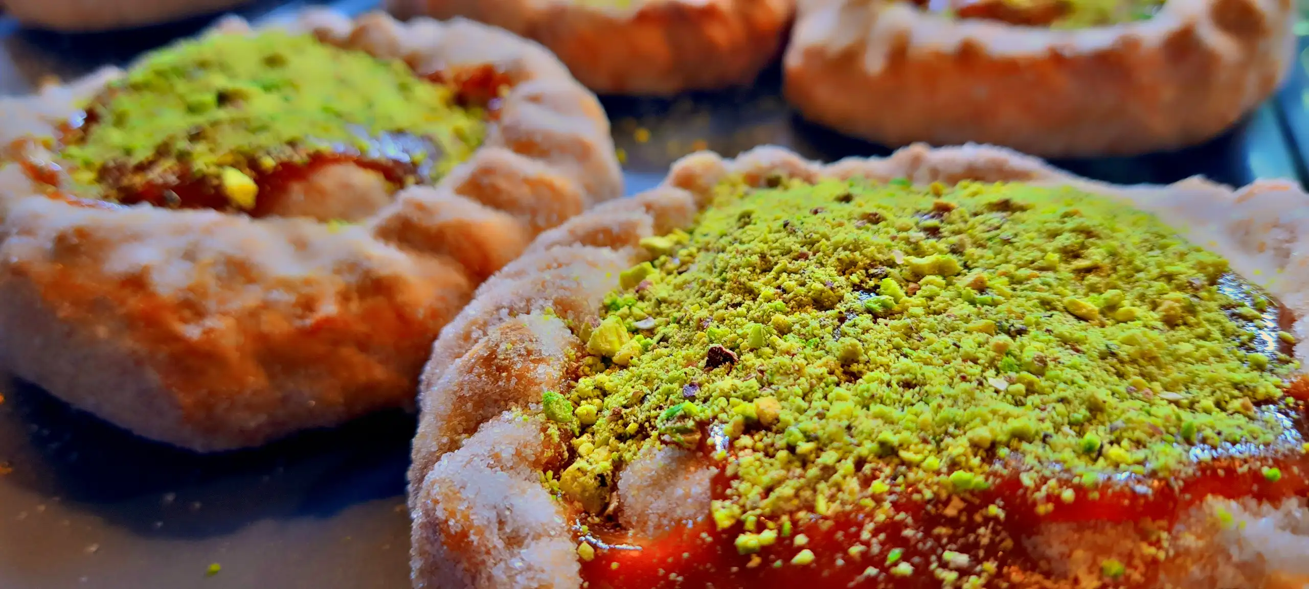 Manolete cordobés de hojaldre con cabello de ángel y pistacho, sabor artesanal y auténtico en cada bocado.